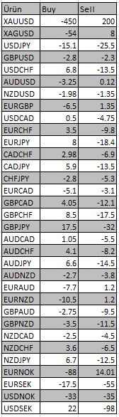 Uluslararası piyasalarda Merkez Bankalarının değişen faizleri nedeniyle XAUUSD ürünündeki swap değerleri tablodaki gibi güncellenmiştir.