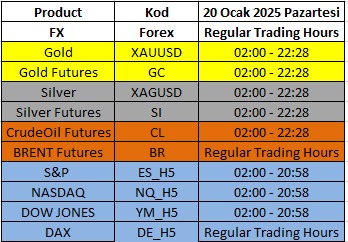 ABD’de 20 Ocak 2025 Pazartesi günü Dr. Martin Luther King tatili nedeniyle bazı ürünlerin işlem saatleri Türkiye Saatiyle aşağıdaki tabloda görüleceği üzere değişiklik gösterecektir. Değişen işlem saatlerine göre pozisyonlarınızı ayarlamanızı önemle hatırlatırız. Ayrıca tatil süresince para transferleri gecikebileceği gibi piyasadaki likiditenin azalmasına bağlı olarak ürünlerin spreadleride, alışkın olduğumuz normal günlerdekinin üzerinde açılmalar görülebilir. Ayrıca fiyat sağlayıcıları likiditeyi daha erken kesmeleri durumunda, erken kapanacak ürünler tabloda yer alan saatlerden daha önce de trade kapanabilir. Bu nedenle şimdiden hesabınızın teminat ve margin düzeyini ayarlamanızı önemle hatırlatır bol kazançlar dileriz.